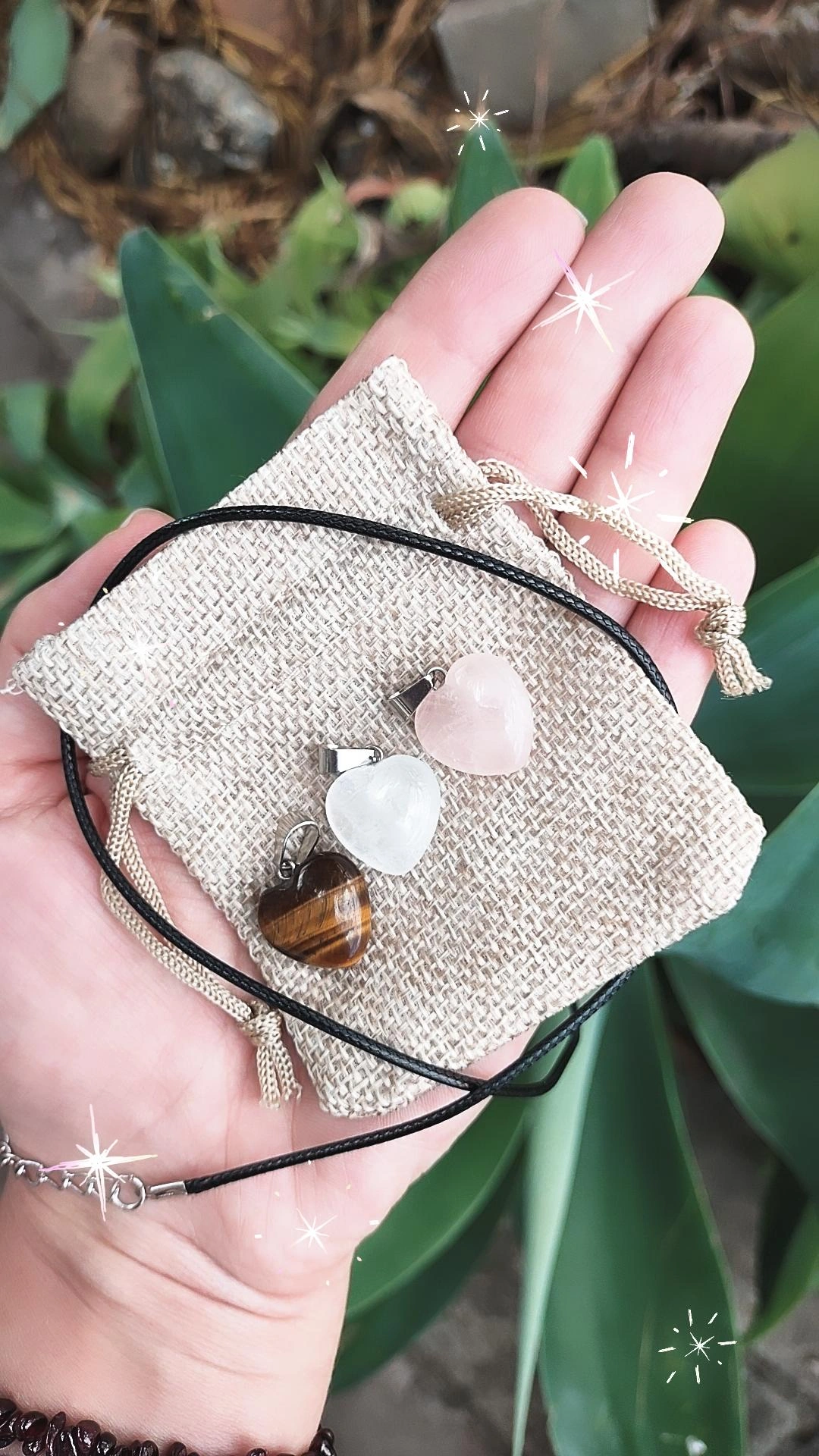 * 1 PINGENTE DE PEDRA NATURA EM FORMATO CORAÇÃO DE QUARTZO CRISTAL.