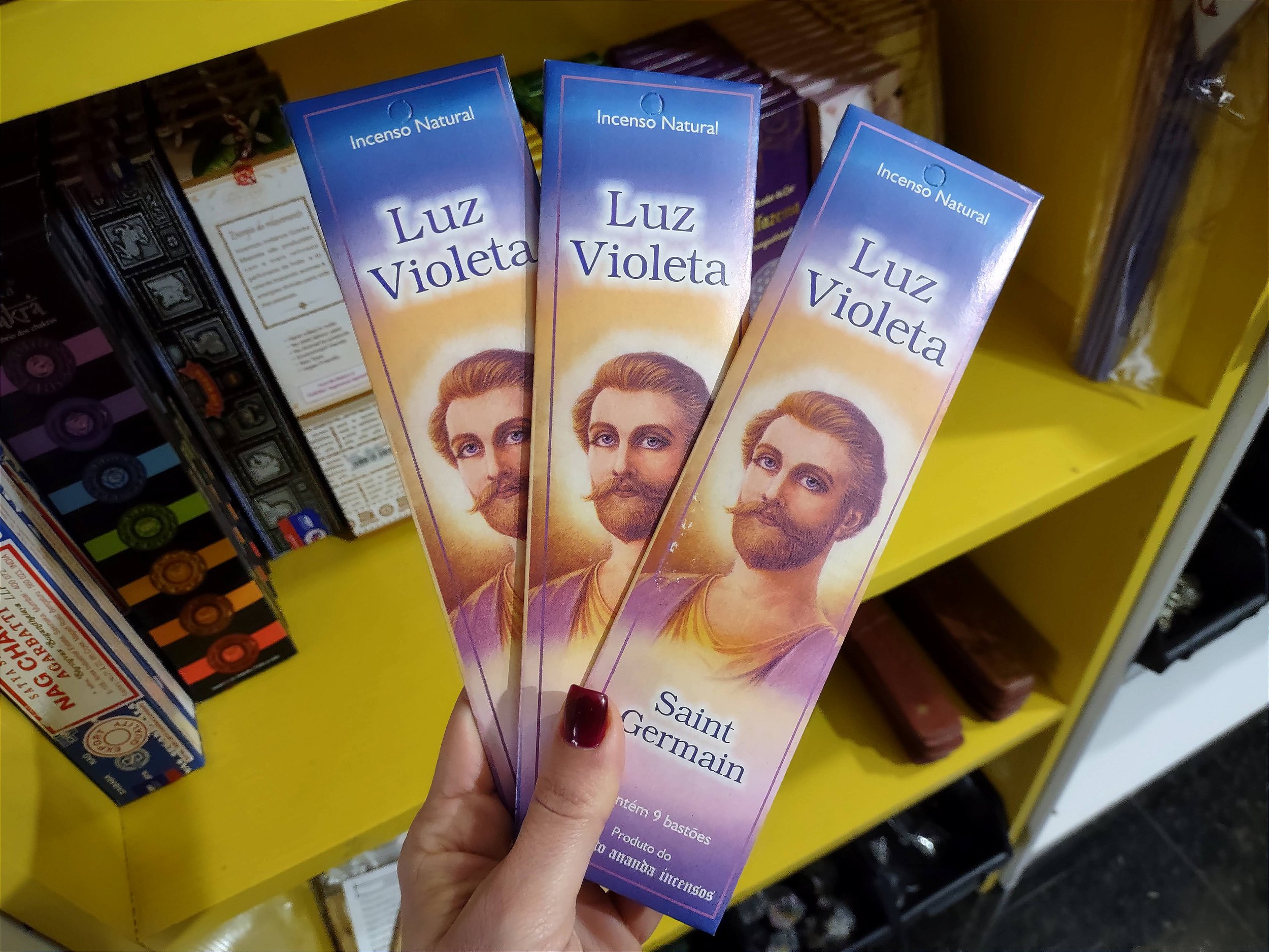Produzido com substâncias orgânicas, biológicas e naturais. O incenso luz violeta possui energia e facilita a conexão com o Raio Violeta e mestre Saint Germain, sendo ele uma entidade da fraternidade branca. É o alquimista mestre do fogo sagrado que trabalha para a liberdade e transmutação mundial. A chama violeta, por sua vez, é a chama da misericórdia, que representa empatia, perdão e a vibração mais elevada do Espírito Santo. Atua transmutando nosso karma, curando nossos corpos e elevando nossa alma e consciência para níveis superiores Sobre os incensos: -Eleva a capacidade de meditação -Acalma, alivia tensão e ansiedade -Atrai boas energias -Conexão espiritual -Elevação dos níveis de consciência -Estímulo da criatividade -Equilíbrio das emoções Incenso Natural Luz Violeta produzidos com matérias primas 100% naturais. Contém com 9 varetas. Contém óleo essencial de alecrim, flor de alfazema, olíbano, benjoin, arruda, carvão, sal marinho e alecrim em folhas.