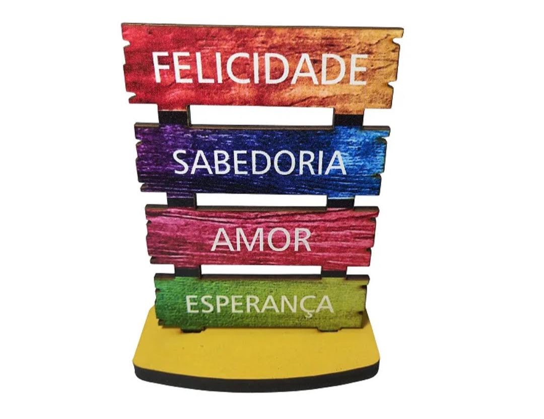 PRODUTO: Plaquinha MDF Felicidade/Sabedoria/Amor/Esperança 2